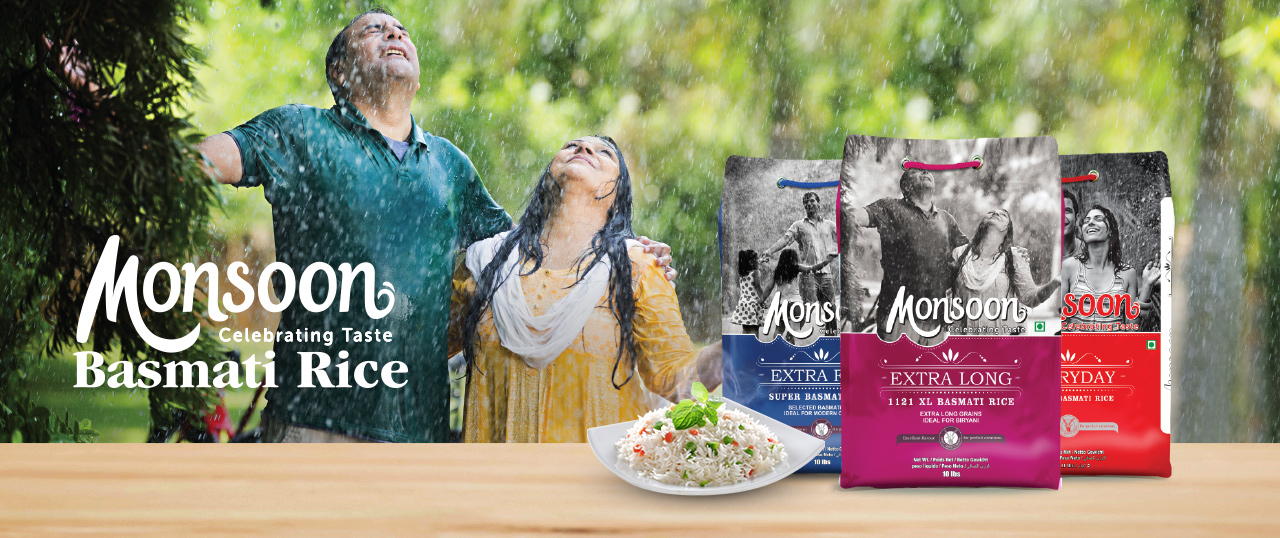 Launched in 2016 in the premium product category, Monsoon Basmati Rice is available in 3 different variants - Monsoon Extra Long- 1121 Basmati Rice, Monsoon Extra Fine- 1401 Pusa Basmati Rice and Monsoon Everyday, available in 1kg & 5 kg Laminates and 20 kg Kerry Bags.