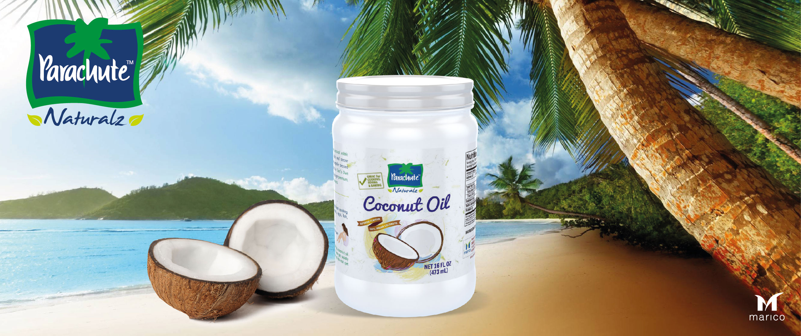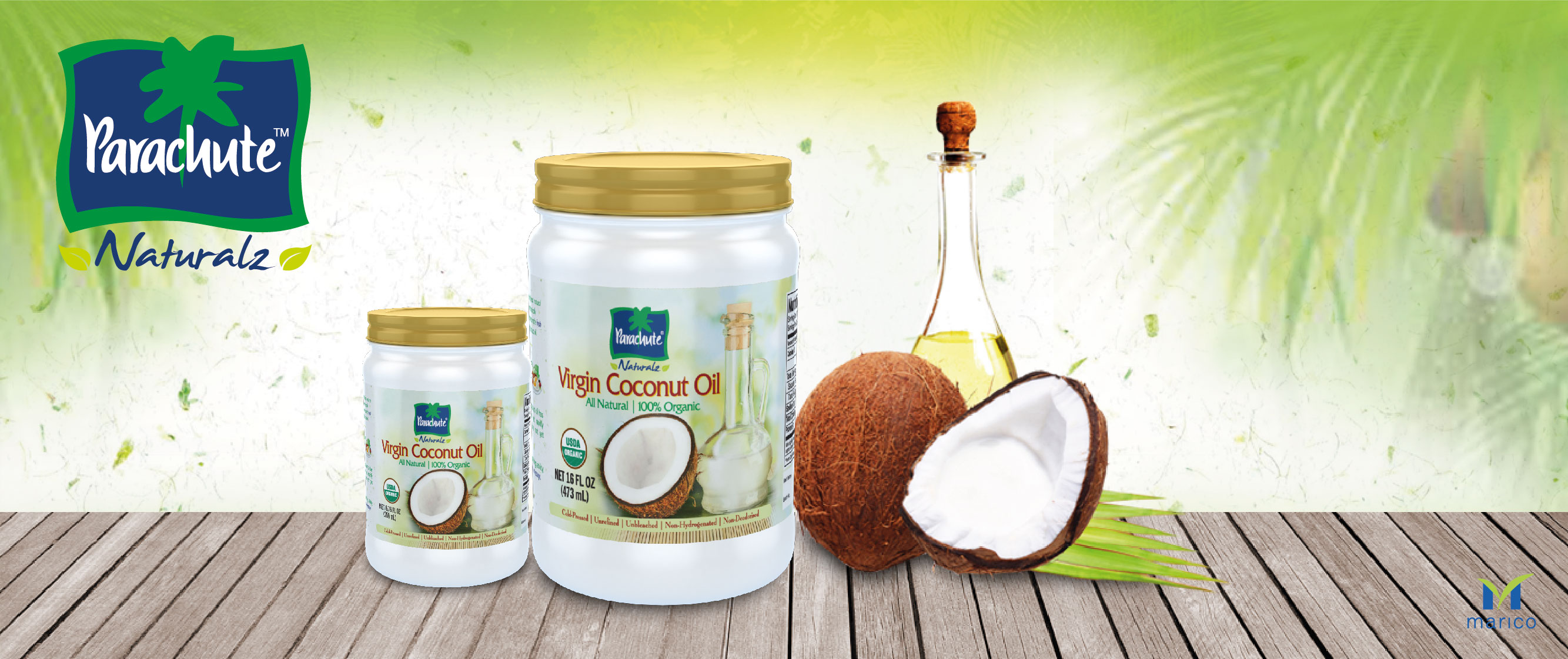 PARACHUTE is a symbol of purity and quality and the undisputed leader of branded coconut oil worldwide. Sales exceed 90million litres annually, Parachute Coconut Oil is one of Marico Limited’s oldest brands.
