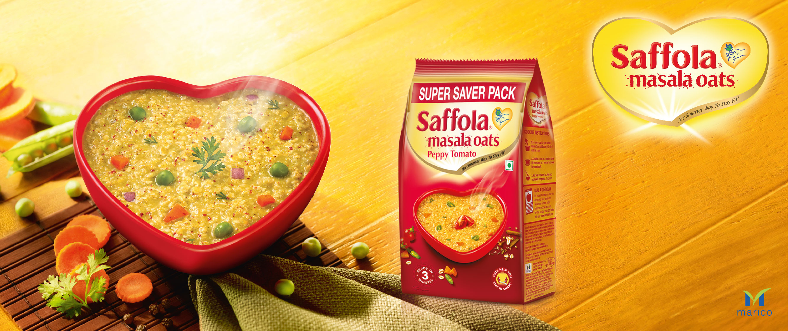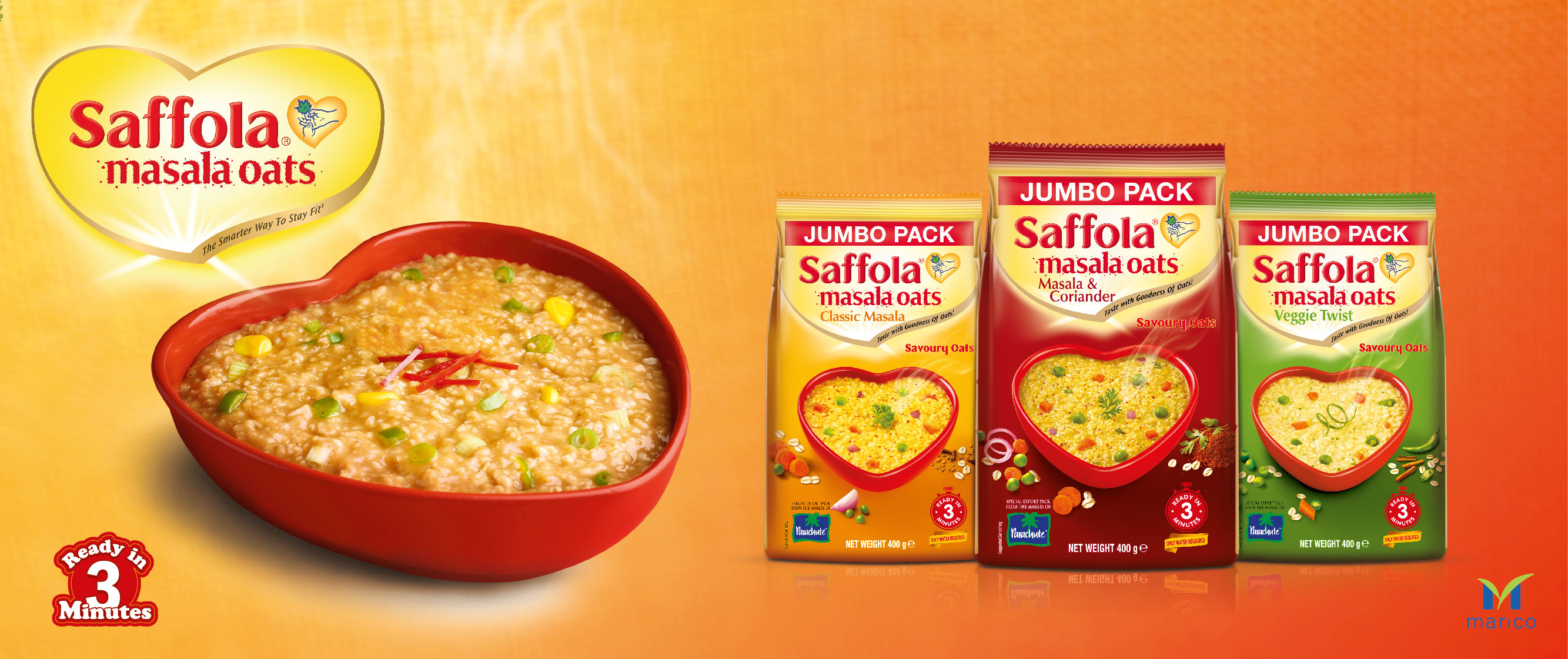 Saffola is Marico’s heart care brand with a product range spread over edible oils, functional foods, rice and salt.